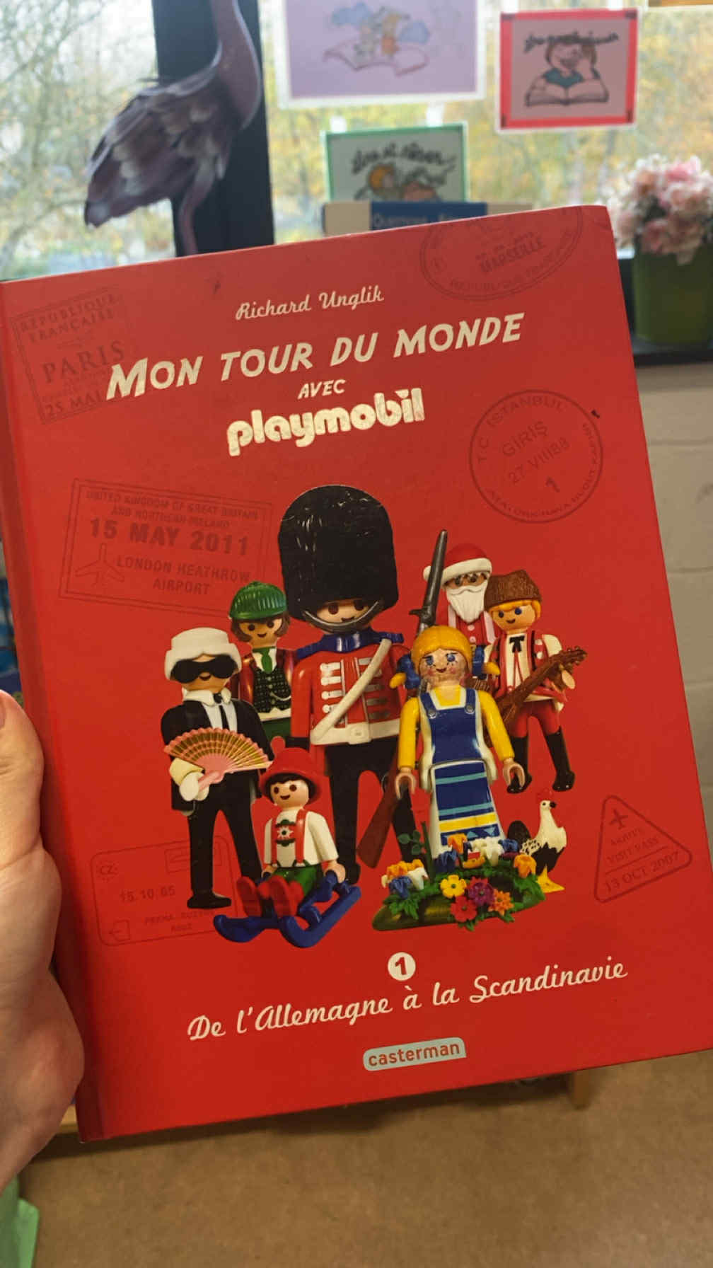 A 5 ans et demi, 6 ans, on adore les livres ! Et quoi de mieux qu’un livre qui fait voyager nos personnages préférés à travers le monde ! Nous suivons les aventures des Playmobil à travers différents pays. A chaque pays, nous découvrons des faits historiques ainsi que des éléments géographiques. Les élèves sont très intéressés car nous parlons de certains de leurs pays ainsi que de certains faits qu’ils ont déjà entendu. Nous mélangeons histoire et géographie à la hauteur d’enfants de cet âge ! Ils adorent. Notre histoire n’est pas finie, nous avons hâte de découvrir d’autres pays du monde.
